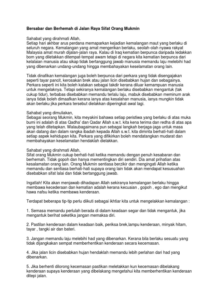 Bersabar Dan Berhemah Di Jalan Raya Sifat Orang Mukmin Pdf